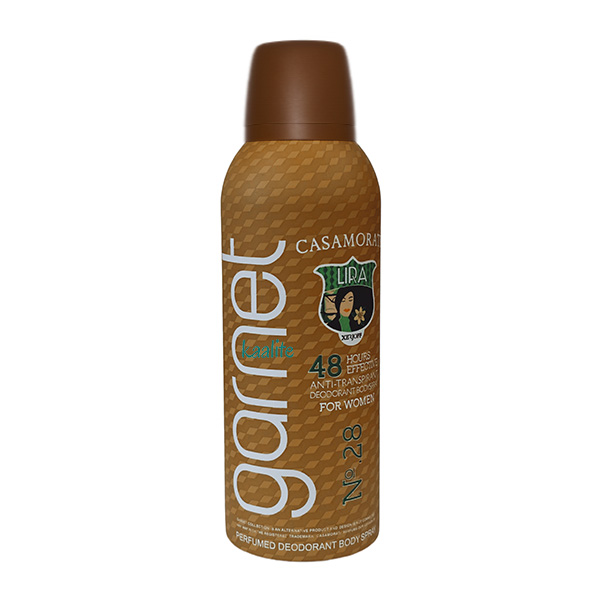 اسپری خوشبو کننده بدن زنانه گارنت شماره 28 رایحه کازاموراتی زرجوف لیرا حجم 200 میلی لیتر